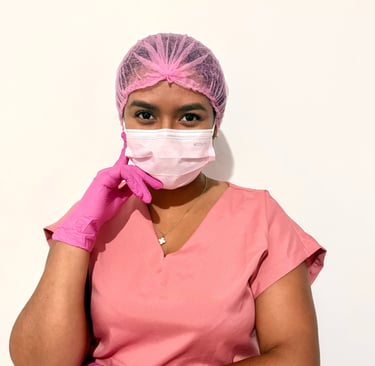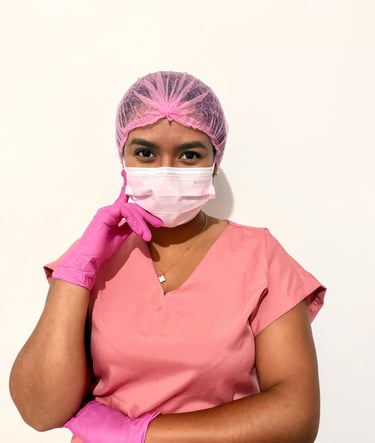 Após o furo, oriento sobre higienização, troca de brincos e sinais de cicatrização saudável.